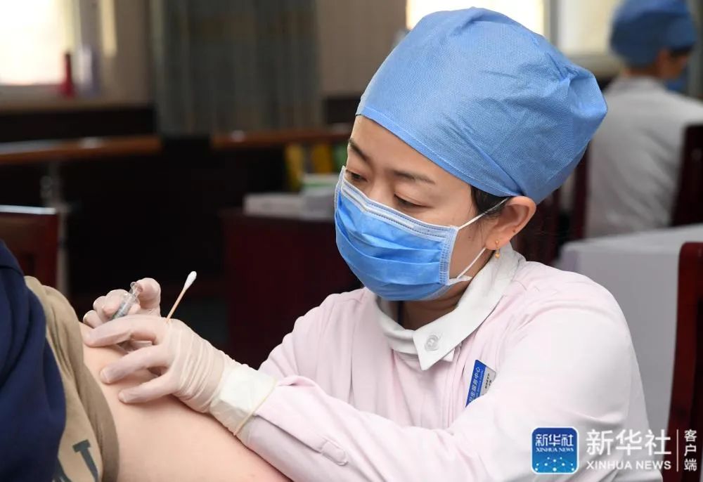 1月6日,在北京市海淀区花园路街道临时接种点登记注射室,医护人员为接种人员注射新冠疫苗。新华社记者 任超 摄